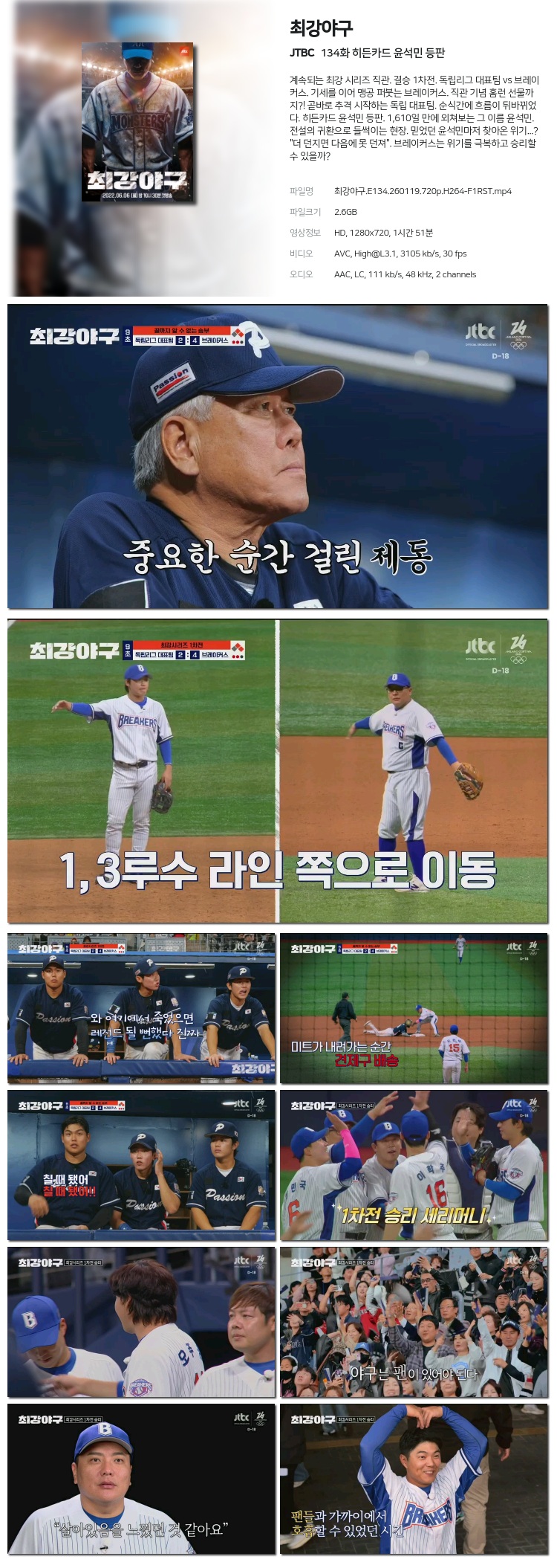 [JTBC] ÃÖ°­¾ß±¸ È÷µçÄ«µå À±¼®¹Î µîÆÇ.E134.260119.1080p.H264-F1RST... 4.7G µ¿¿µ»ó