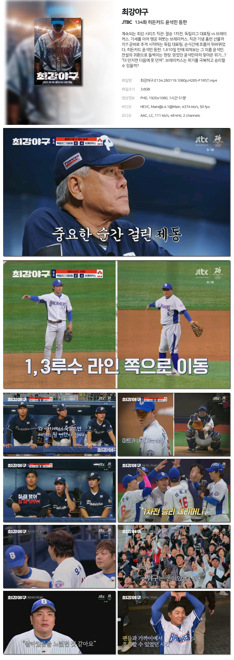 [JTBC] ÃÖ°­¾ß±¸ È÷µçÄ«µå À±¼®¹Î µîÆÇ.E134.260119.1080p.H265-F1RST... 3.6G µ¿¿µ»ó