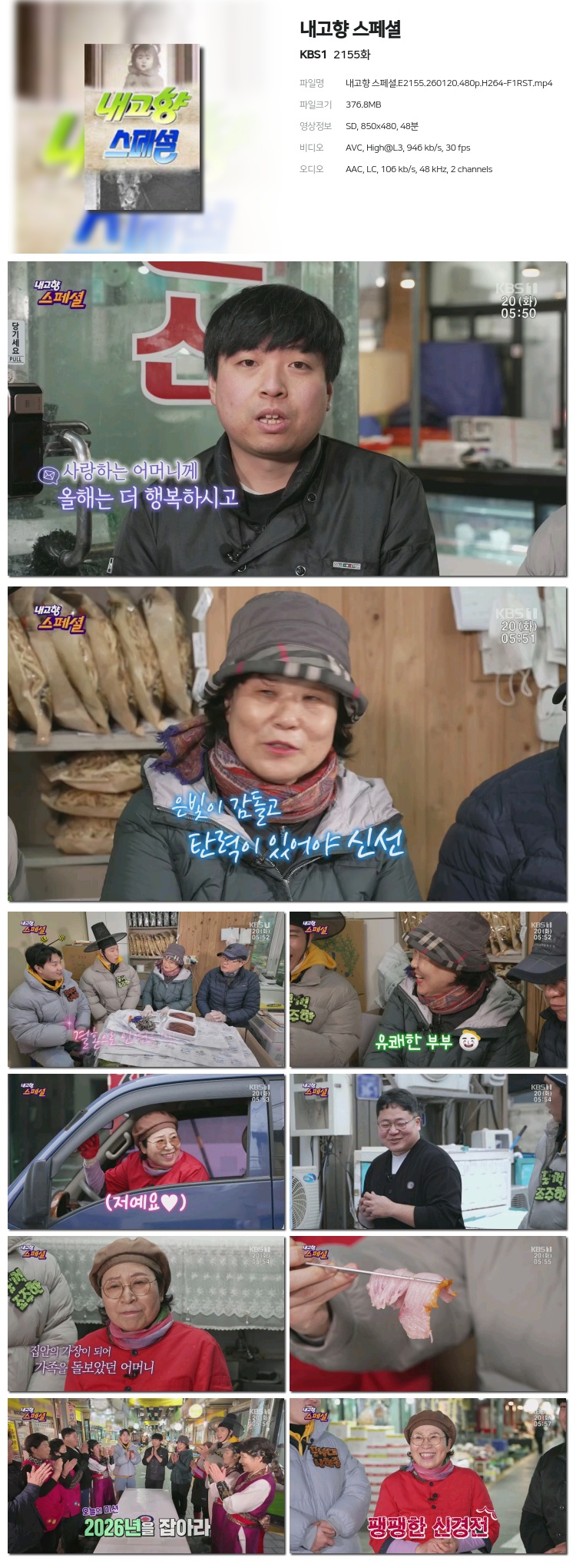 [KBS1] ³»°íÇâ ½ºÆä¼È.E2155.260120.480p.H264-F1RST... 376.8M µ¿¿µ»ó