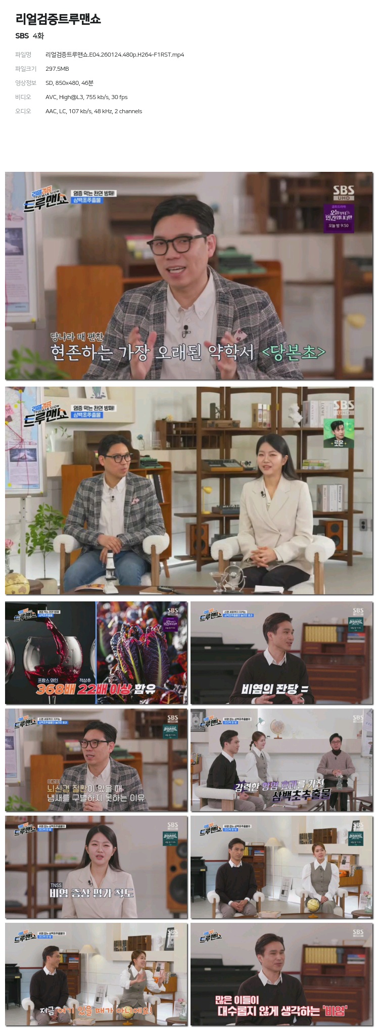[SBS] ¸®¾ó°ËÁõÆ®·ç¸Ç¼î.E04.260124.480p.H264-F1RST... 297.5M µ¿¿µ»ó