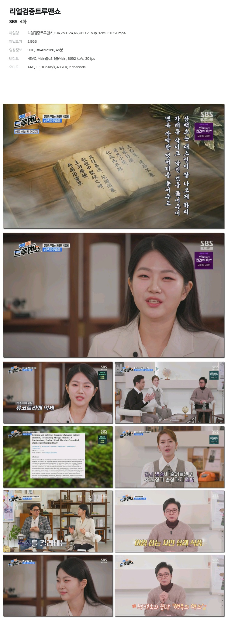 [SBS] ¸®¾ó°ËÁõÆ®·ç¸Ç¼î.E04.260124.4K.UHD.2160p.H265-F1RST... 2.9G µ¿¿µ»ó