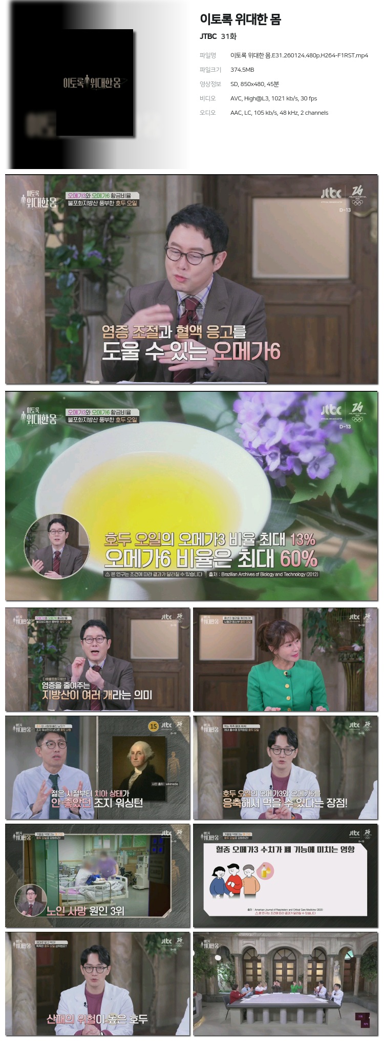 [JTBC] ÀÌÅä·Ï À§´ëÇÑ ¸ö.E31.260124.480p.H264-F1RST... 374.5M µ¿¿µ»ó