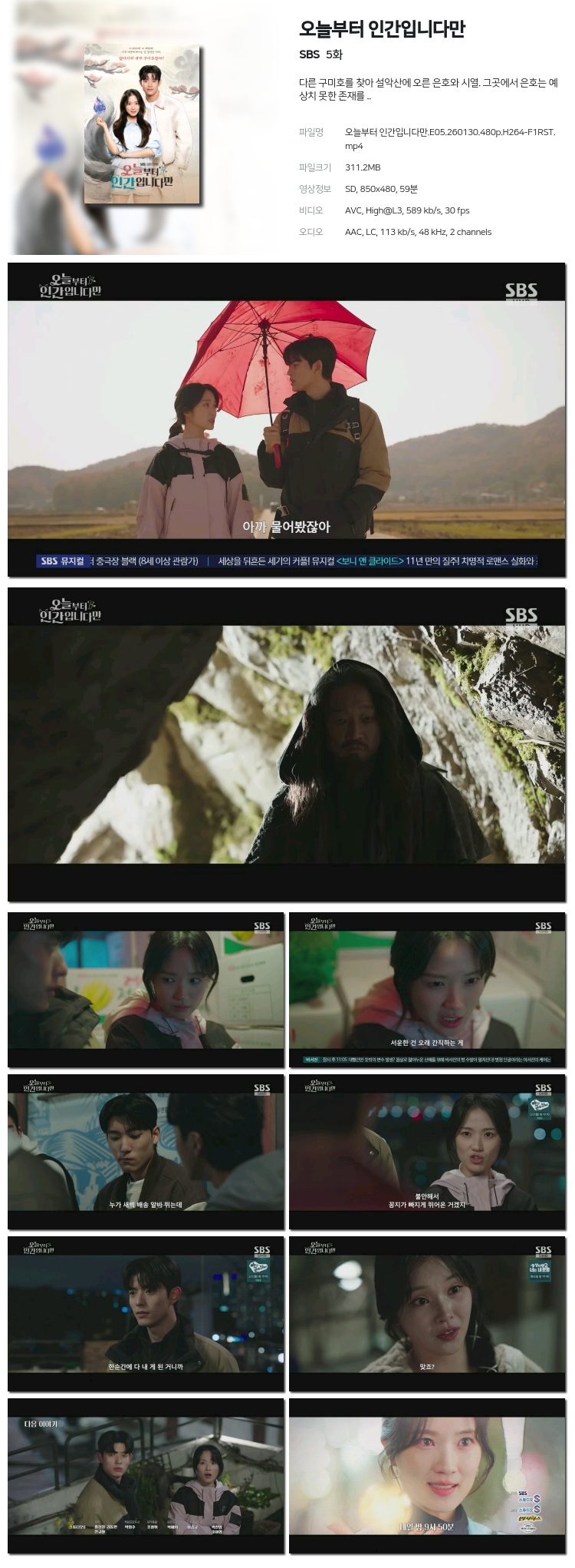 [SBS] ¿À´ÃºÎÅÍ Àΰ£ÀÔ´Ï´Ù¸¸.E05.260130.480p.H264-F1RST... 311.2M µå¶ó¸¶