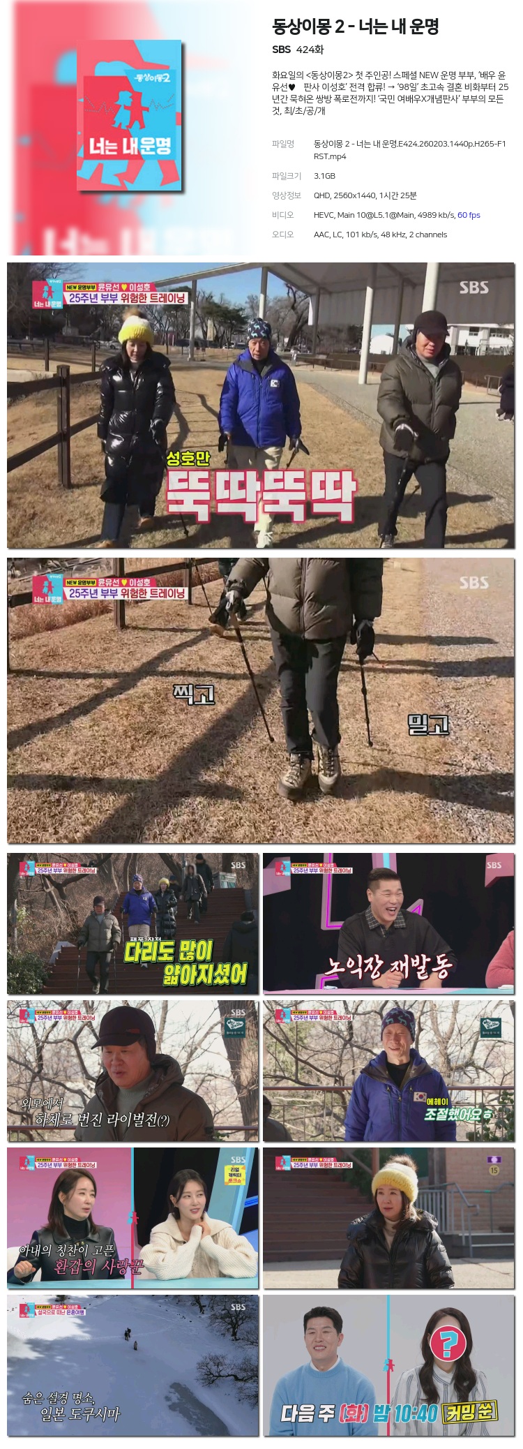 [SBS] µ¿»óÀ̸ù 2 - ³Ê´Â ³» ¿î¸í.E424.260203.1440p.H265-F1RST... 3.1G µ¿¿µ»ó
