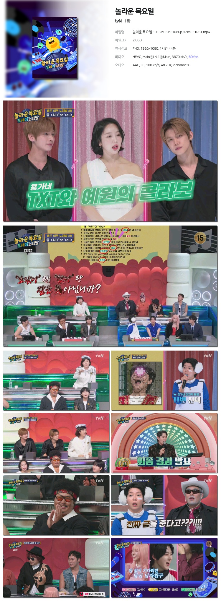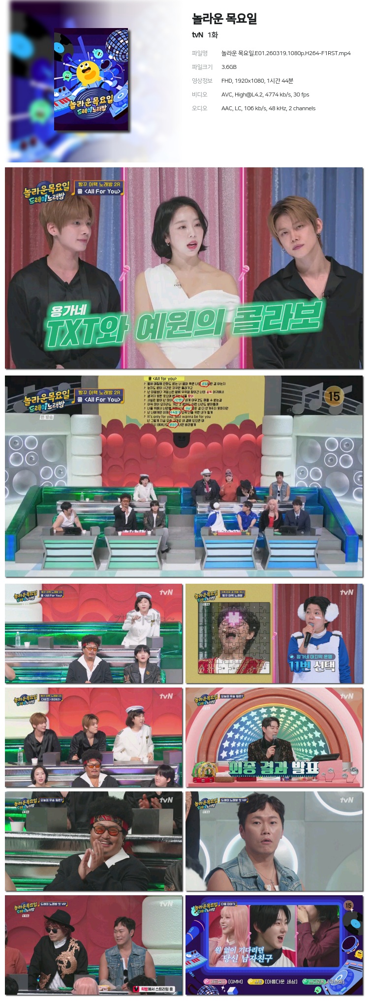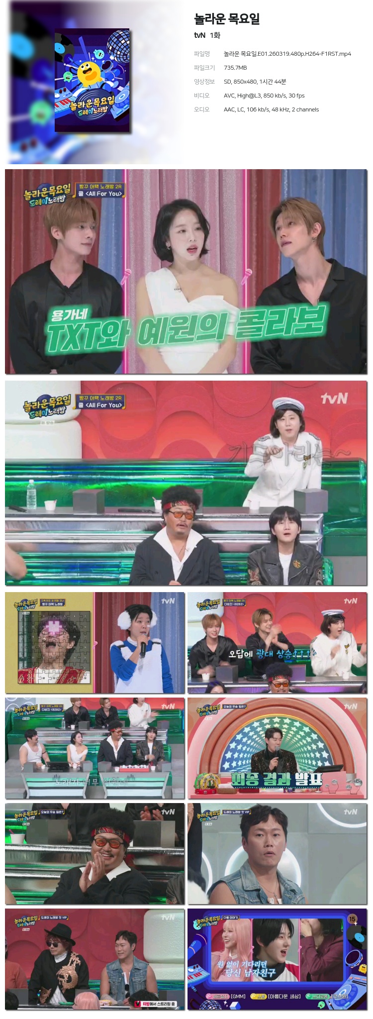 [tvN] ³î¶ó¿î ¸ñ¿äÀÏ.E01.260319.480p.H264-F1RST... 735.7M µ¿¿µ»ó