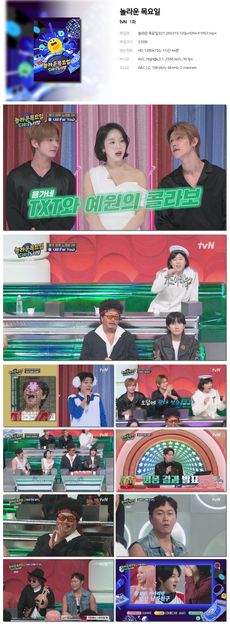 [tvN] ³î¶ó¿î ¸ñ¿äÀÏ.E01.260319.720p.H264-F1RST... 2.0G µ¿¿µ»ó