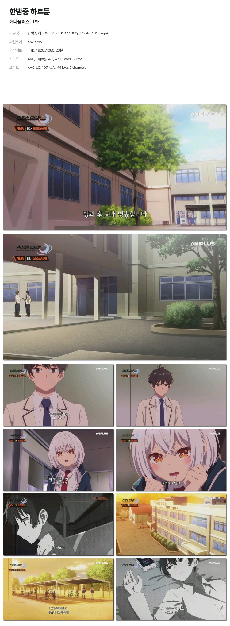[¾Ö´ÏÇ÷¯½º] ÇѹãÁß ÇÏÆ®Æª.E01.260107.1080p.H264-F1RST... 832.8M ÃֽžִÏ