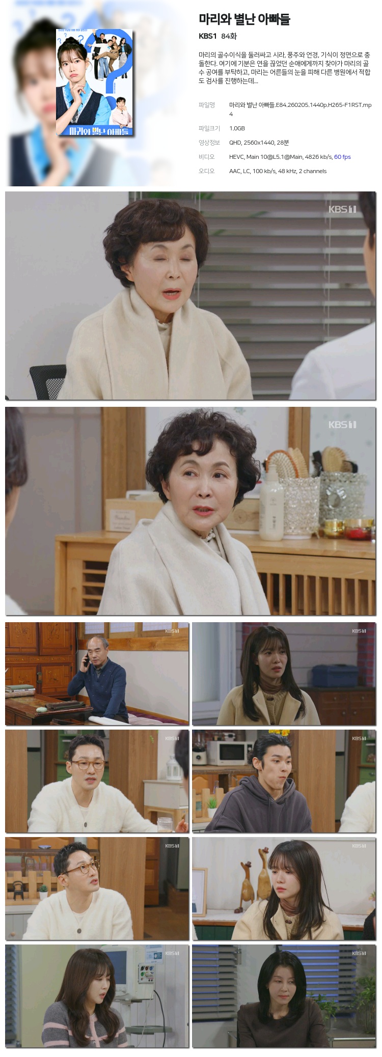 [KBS1] ¸¶¸®¿Í º°³­ ¾Æºüµé.E84.260205.1440p.H265-F1RST... 1.0G Ãֽŵå¶ó¸¶