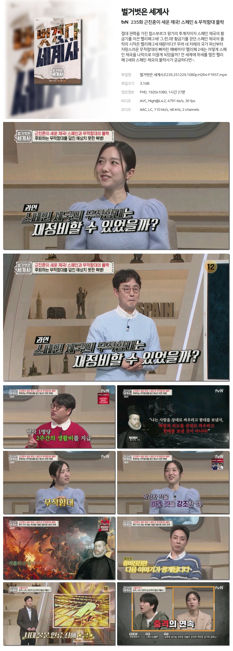[tvN] ¹ú°Å¹þÀº ¼¼°è»ç ±ÙģȥÀÌ ¼¼¿î Á¦±¹! ½ºÆäÀÎ & ¹«ÀûÇÔ´ë ¸ô¶ô.E235.251229.720p.H264... 1.7G ¿¹´É