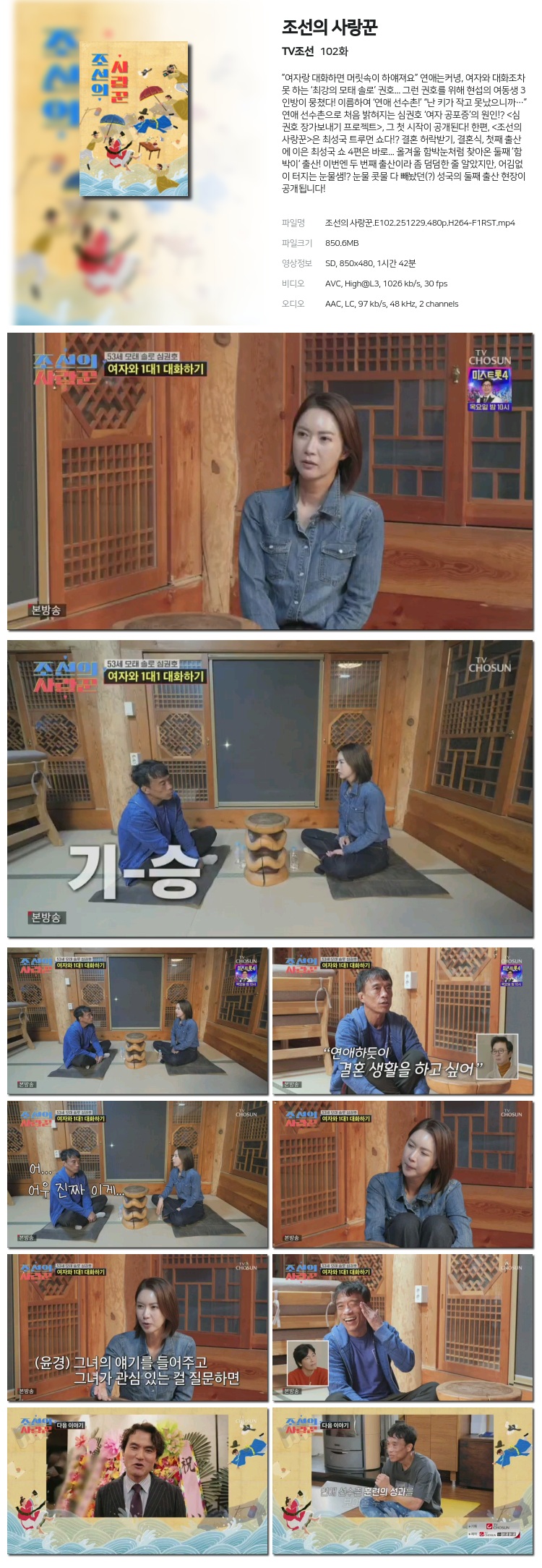 [TVÁ¶¼±] Á¶¼±ÀÇ »ç¶û²Û.E102.251229.480p.H264-F1RST... 850.6M ¿¹´É