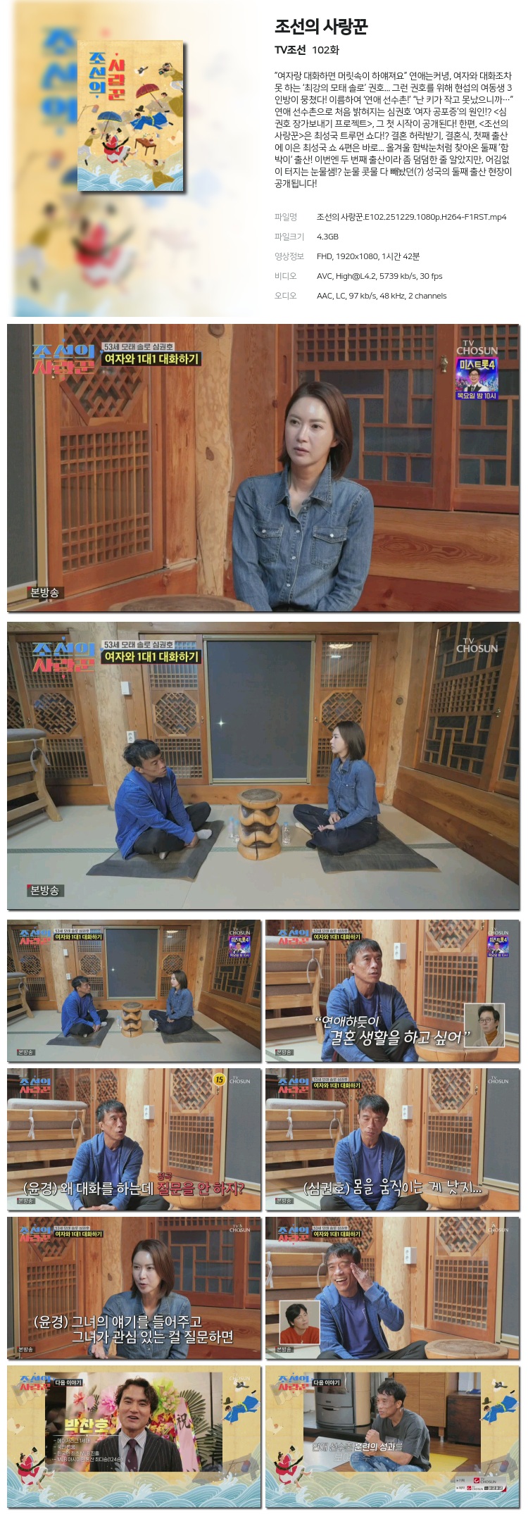 [TVÁ¶¼±] Á¶¼±ÀÇ »ç¶û²Û.E102.251229.1080p.H264-F1RST... 4.3G ¿¹´É