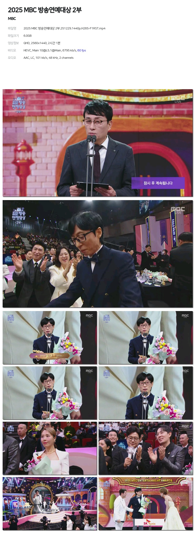 [MBC] 2025 MBC ¹æ¼Û¿¬¿¹´ë»ó 2ºÎ.251229.1440p.H265-F1RST... 6.0G ±³¾ç