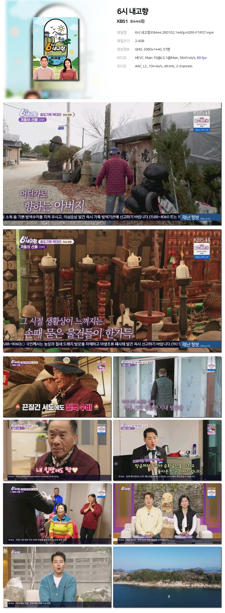 [KBS1] 6½Ã ³»°íÇâ.E8444.260102.1440p.H265-F1RST... 2.4G ±³¾ç