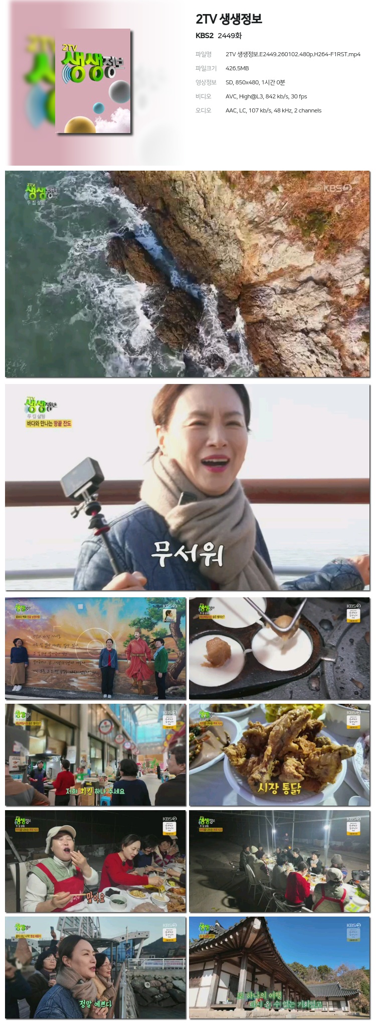 [KBS2] 2TV »ý»ýÁ¤º¸.E2449.260102.480p.H264-F1RST... 426.5M ±³¾ç