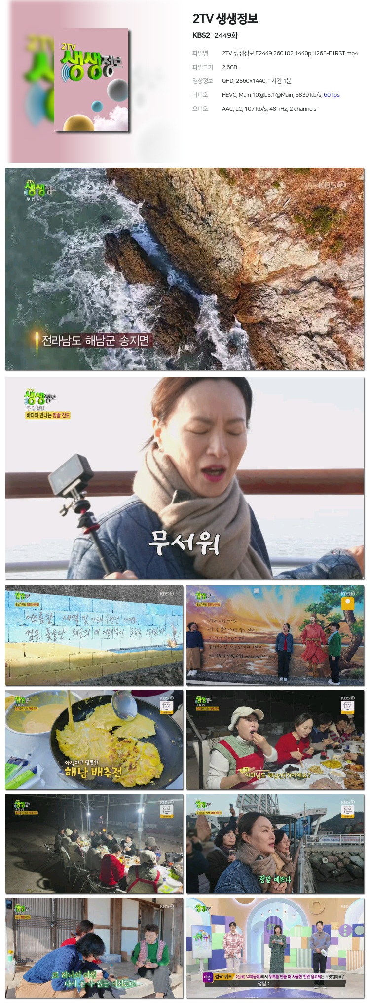 [KBS2] 2TV »ý»ýÁ¤º¸.E2449.260102.1440p.H265-F1RST... 2.6G ±³¾ç
