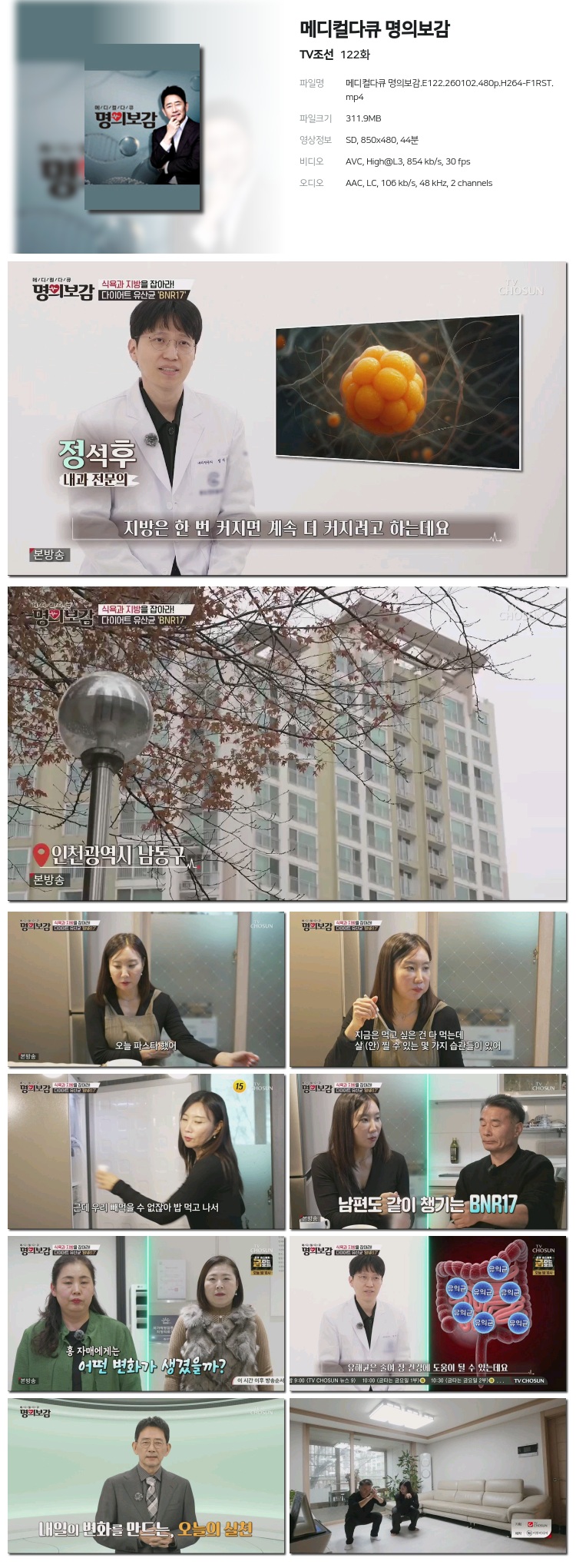 [TVÁ¶¼±] ¸ÞµðÄôÙÅ¥ ¸íÀǺ¸°¨.E122.260102.480p.H264-F1RST... 311.9M ±³¾ç