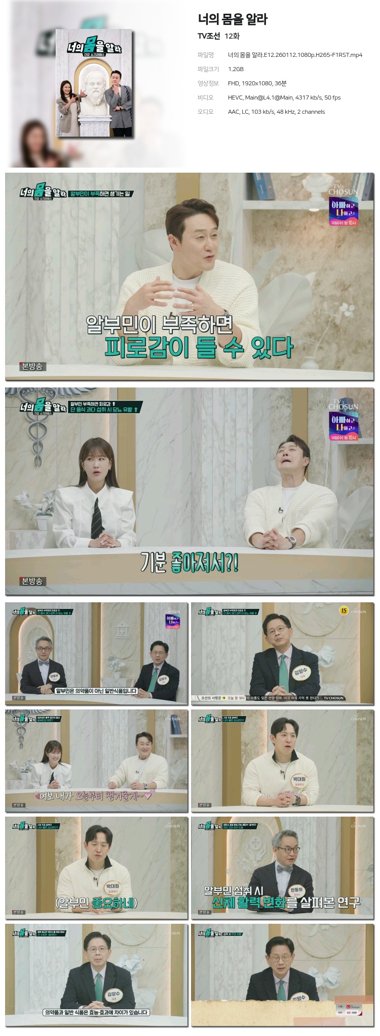 [TVÁ¶¼±] ³ÊÀÇ ¸öÀ» ¾Ë¶ó.E12.260112.1080p.H265-F1RST... 1.2G ±³¾ç