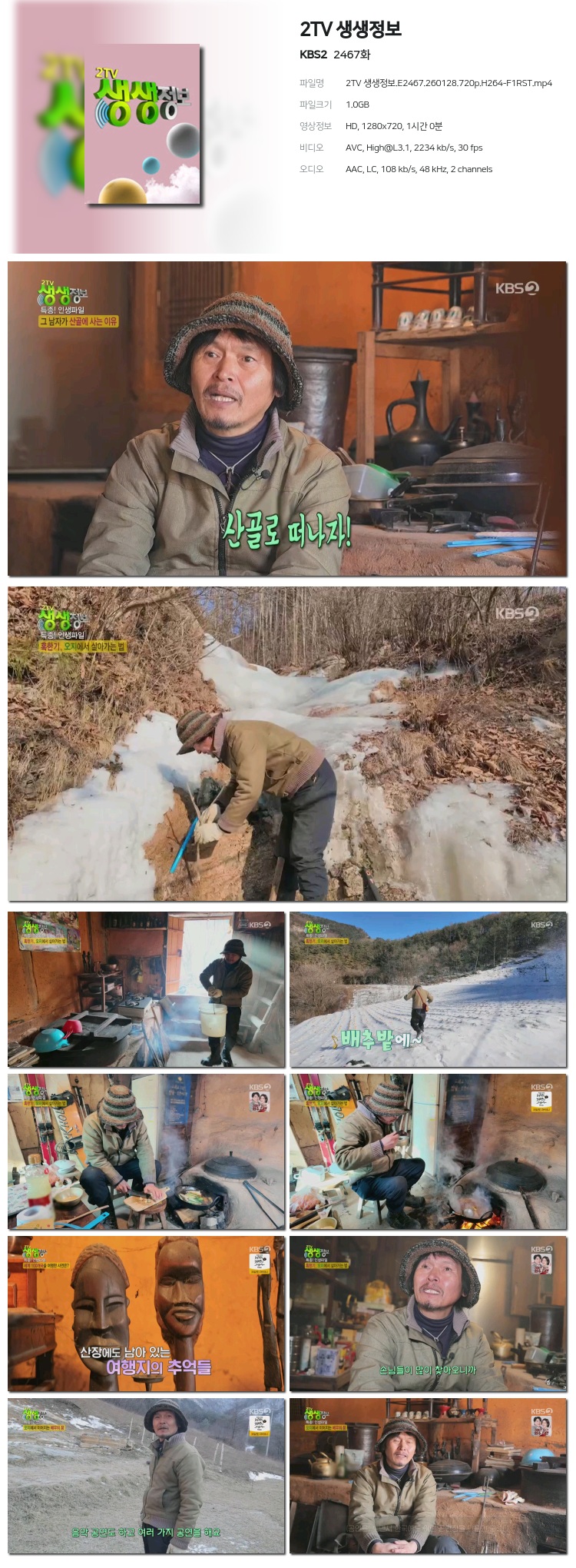 [KBS2] 2TV »ý»ýÁ¤º¸.E2467.260128.720p.H264-F1RST... 1.0G ±³¾ç