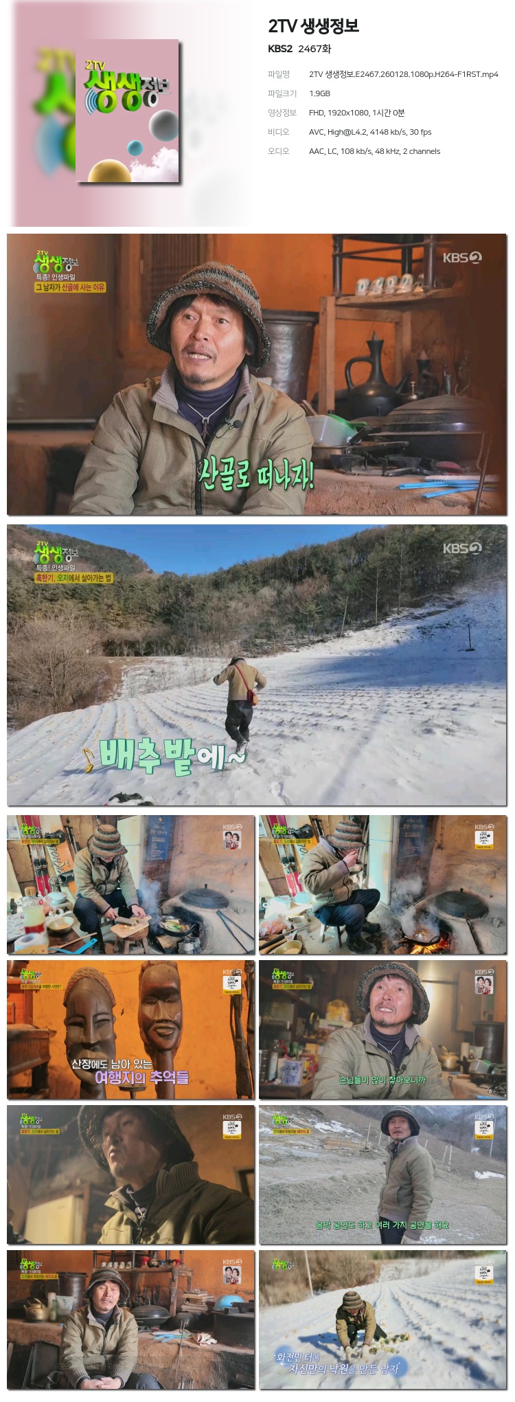 [KBS2] 2TV »ý»ýÁ¤º¸.E2467.260128.1080p.H264-F1RST... 1.9G ±³¾ç