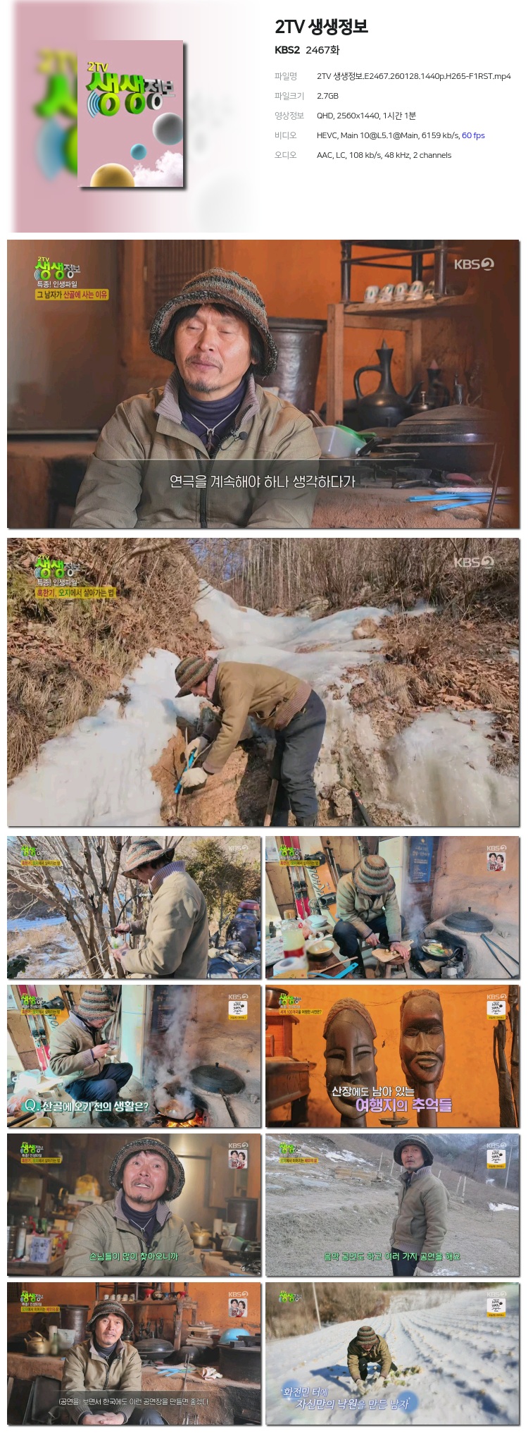 [KBS2] 2TV »ý»ýÁ¤º¸.E2467.260128.1440p.H265-F1RST... 2.7G ±³¾ç