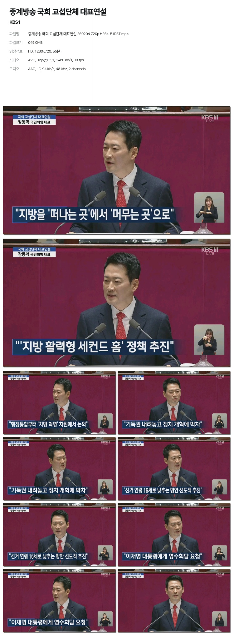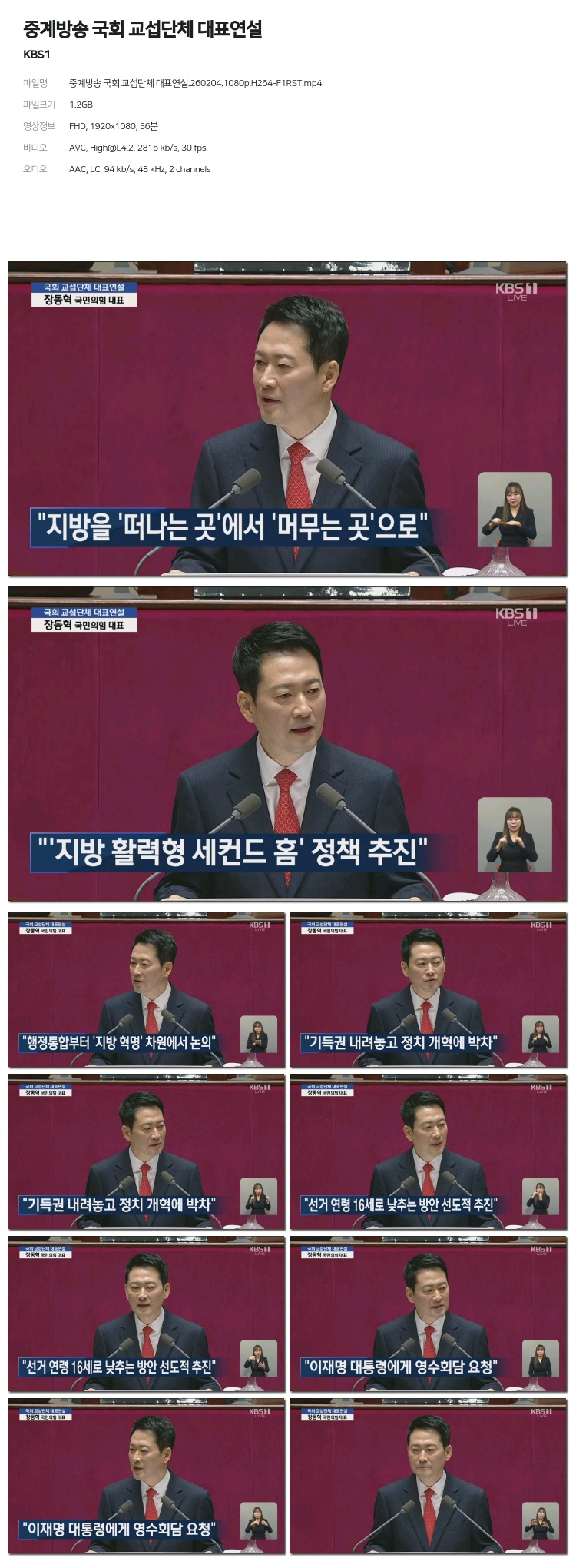 [KBS1] Áß°è¹æ¼Û ±¹È¸ ±³¼·´Üü ´ëÇ¥¿¬¼³.260204.1440p.H265-F1RST... 2.0G ±³¾ç