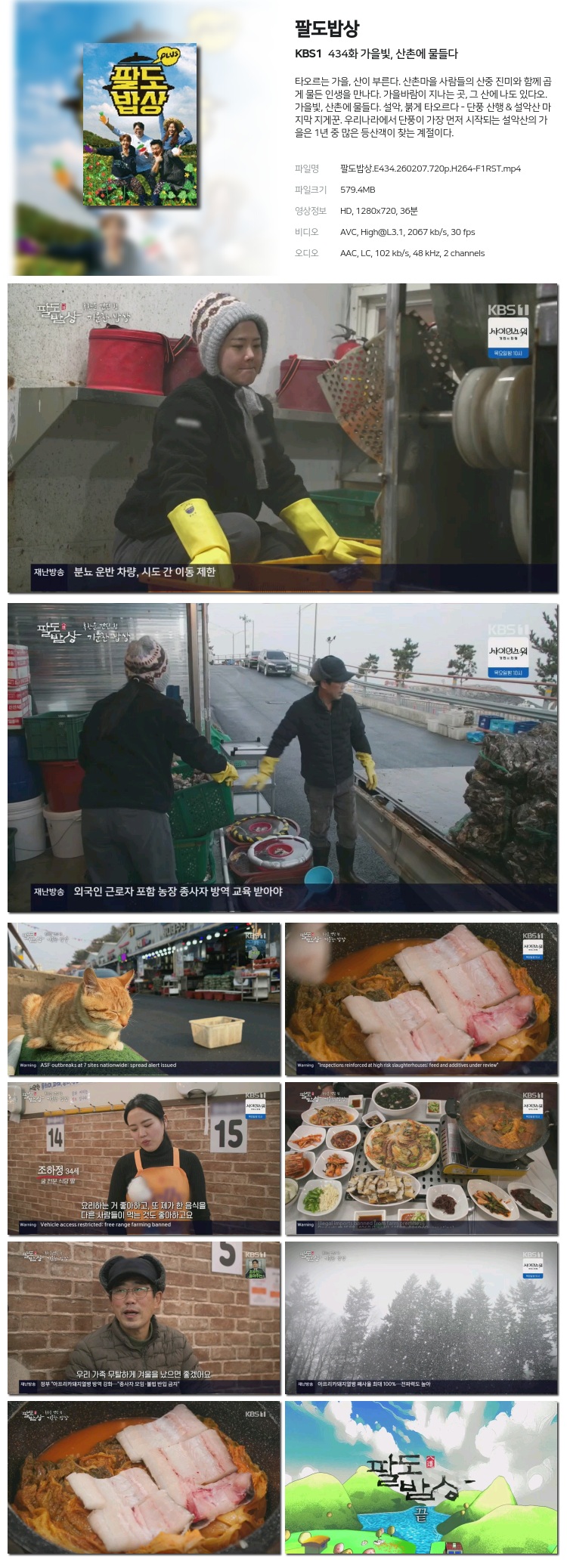 [KBS1] ÆÈµµ¹ä»ó °¡À»ºû, »êÃÌ¿¡ ¹°µé´Ù.E434.260207.720p.H264-F1RST... 579.4M ¿¹´É