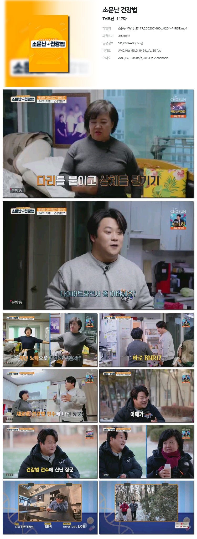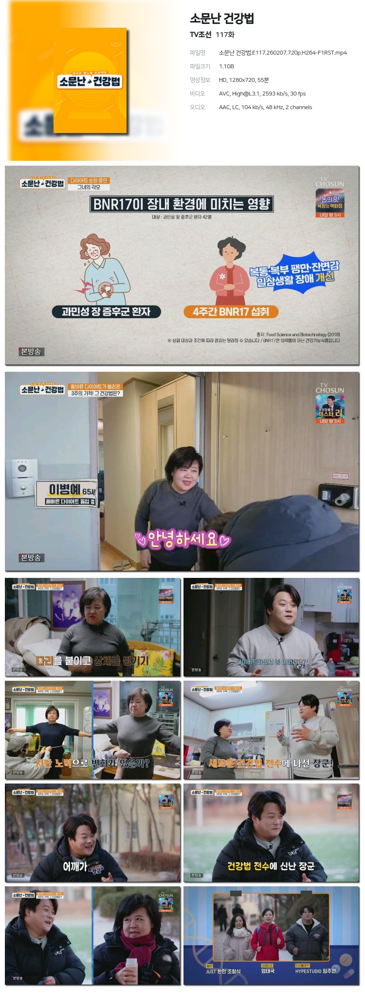 [TVÁ¶¼±] ¼Ò¹®³­ °Ç°­¹ý.E117.260207.1080p.H265-F1RST... 1.5G ±³¾ç