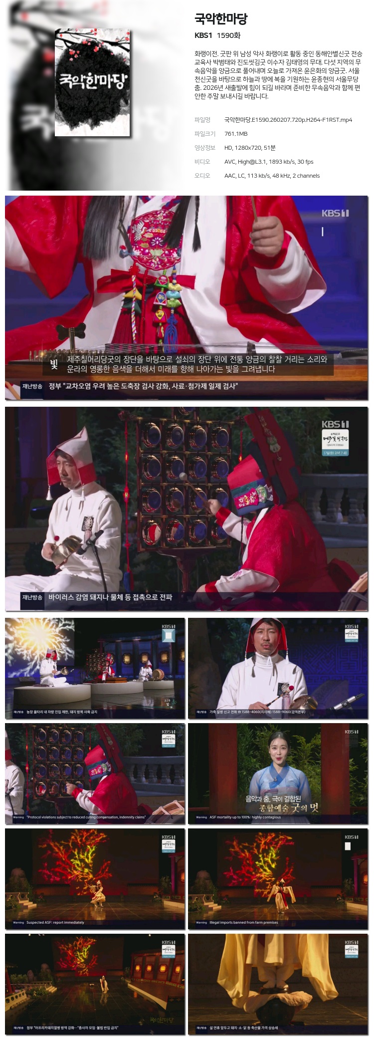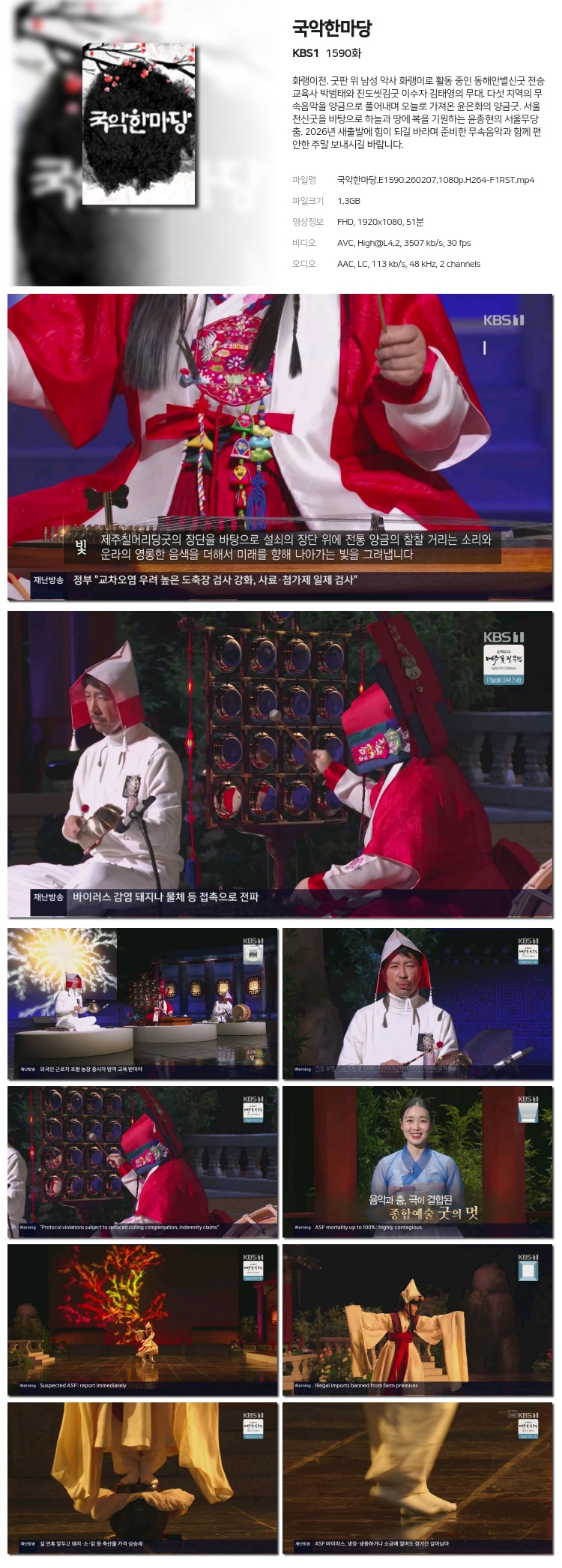 [KBS1] ±¹¾ÇÇѸ¶´ç.E1590.260207.1080p.H264-F1RST... 1.3G ±³¾ç