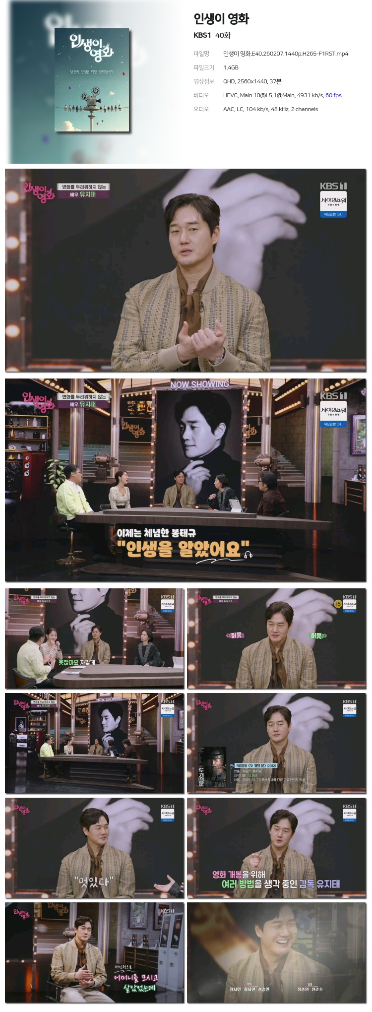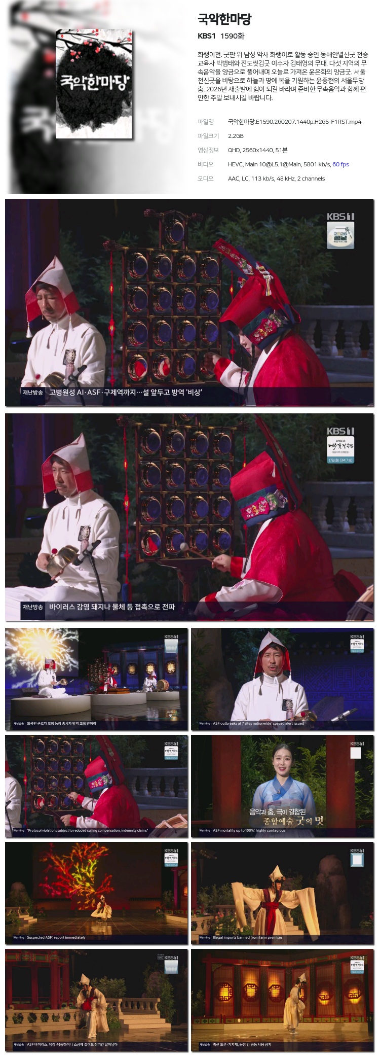 [KBS1] ±¹¾ÇÇѸ¶´ç.E1590.260207.1440p.H265-F1RST... 2.2G ±³¾ç
