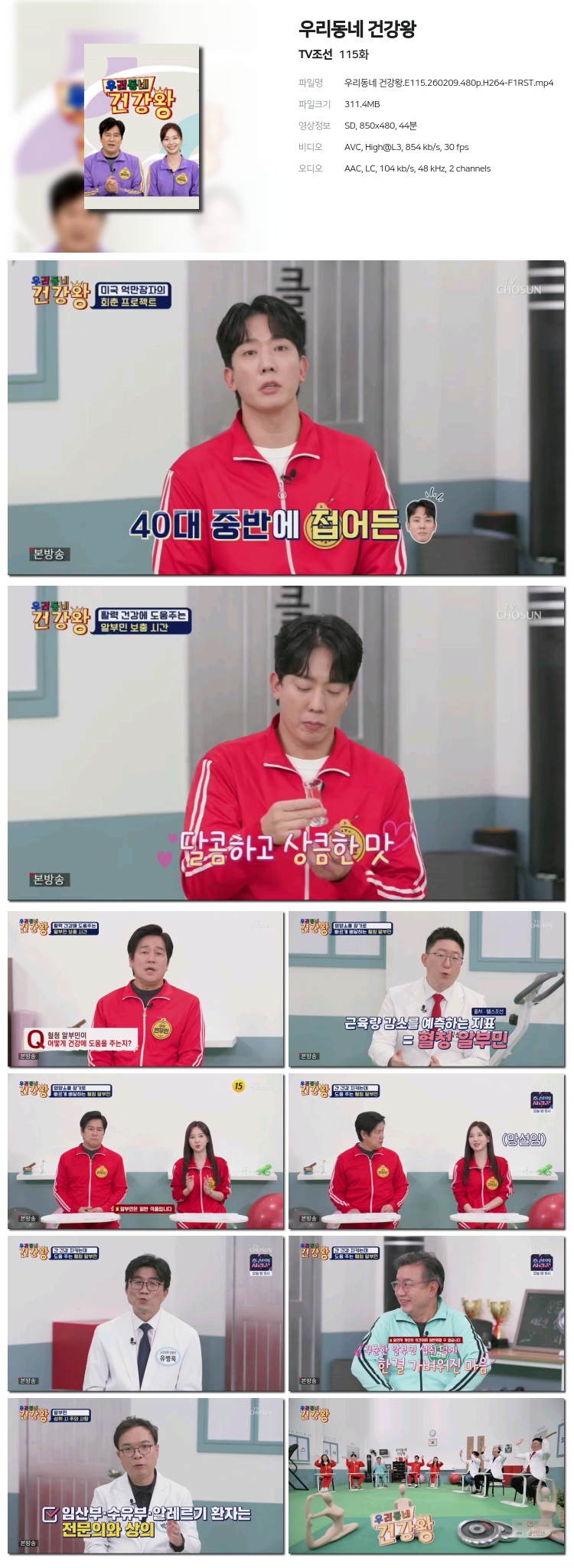 [TVÁ¶¼±] ¿ì¸®µ¿³× °Ç°­¿Õ.E115.260209.480p.H264-F1RST... 311.4M ±³¾ç