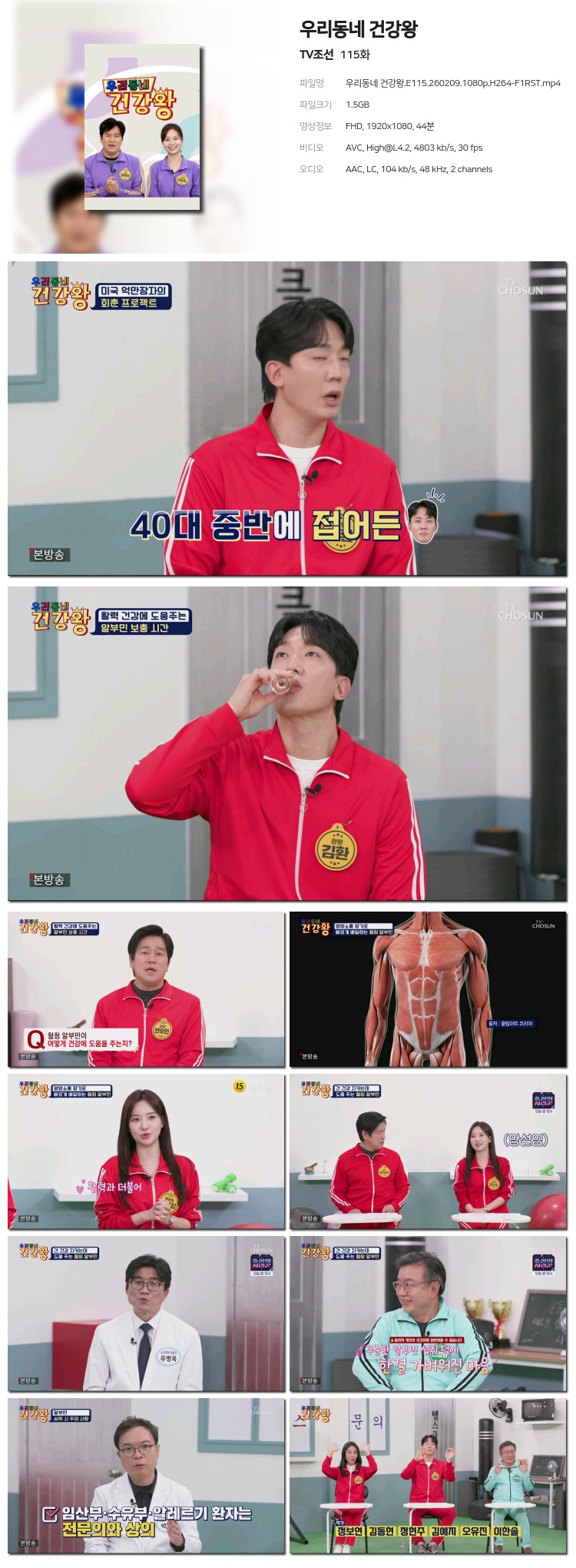 [TVÁ¶¼±] ¿ì¸®µ¿³× °Ç°­¿Õ.E115.260209.1080p.H264-F1RST... 1.5G ±³¾ç