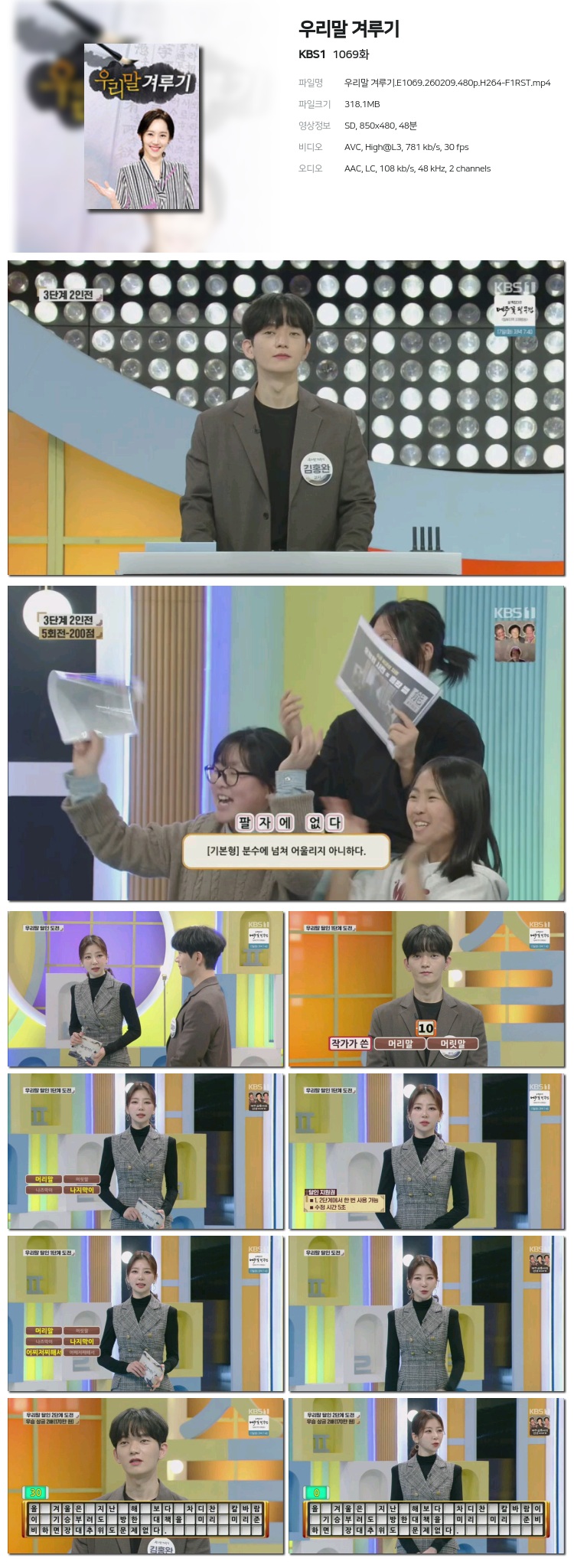 [KBS1] ¿ì¸®¸» °Ü·ç±â.E1069.260209.480p.H264-F1RST... 318.1M ±³¾ç