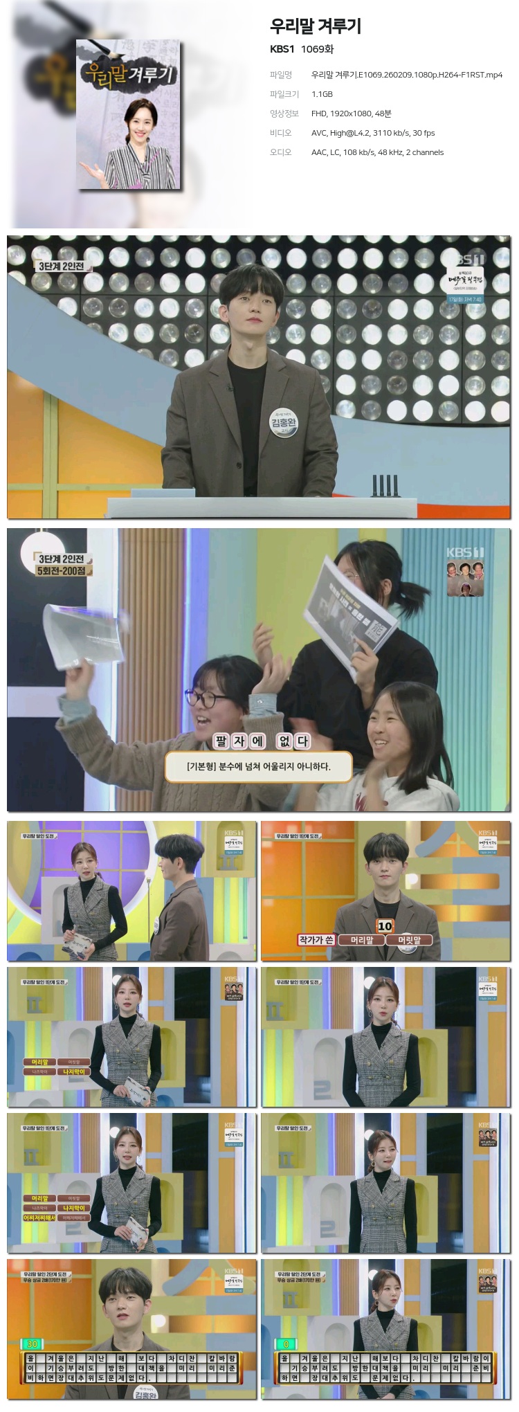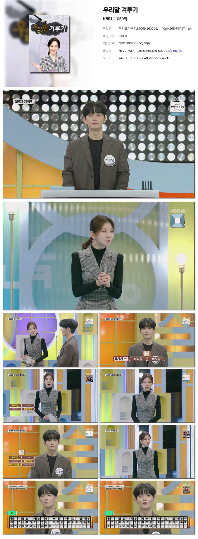 [KBS1] ¿ì¸®¸» °Ü·ç±â.E1069.260209.1440p.H265-F1RST... 1.8G ±³¾ç