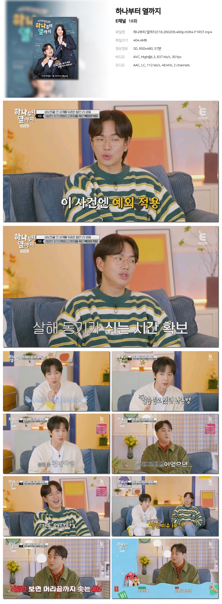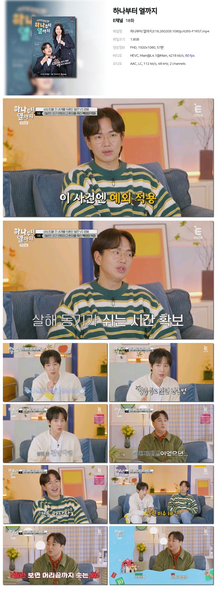 [Eä³Î] ÇϳªºÎÅÍ ¿­±îÁö.E18.260209.1080p.H265-F1RST... 1.8G ¿¹´É