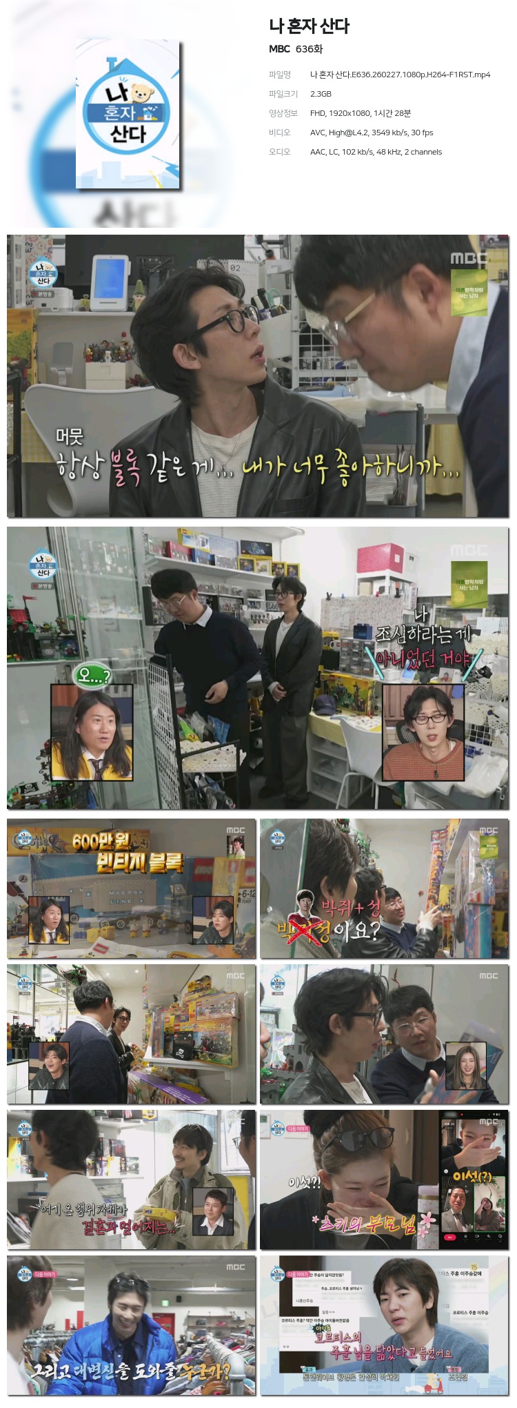 [MBC] ³ª È¥ÀÚ »ê´Ù.E636.260227.1080p.H264-F1RST... 2.3G ¿¹´É