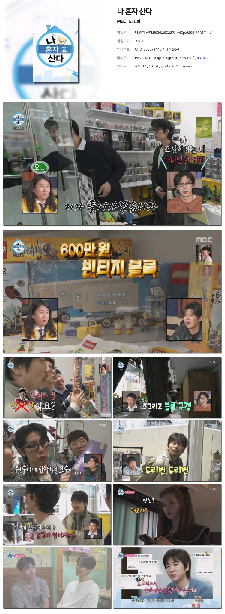 [MBC] ³ª È¥ÀÚ »ê´Ù.E636.260227.1440p.H265-F1RST... 3.5G ¿¹´É