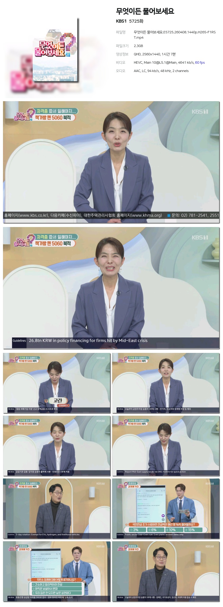 [KBS1] ¹«¾ùÀÌµç ¹°¾îº¸¼¼¿ä.E5725.260408.1440p.H265-F1RST... 2.3G ±³¾ç