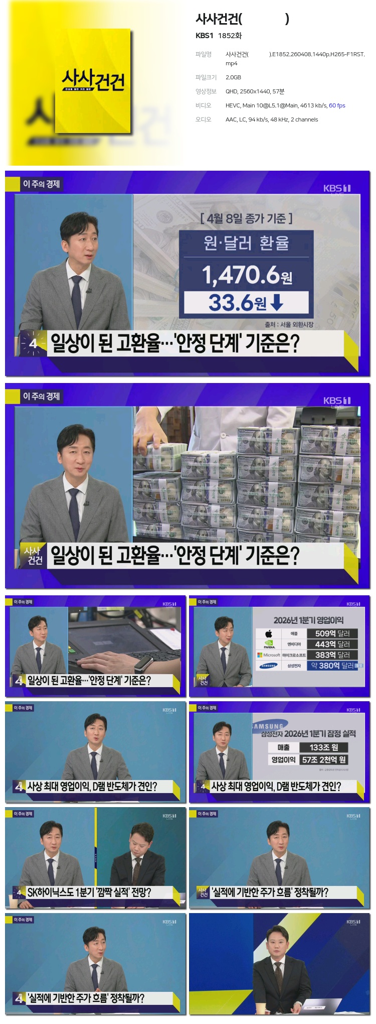 [KBS1] »ç»ç°Ç°Ç(ÞÀÞÀËìËì).E1852.260408.1440p.H265-F1RST... 2.0G ±³¾ç
