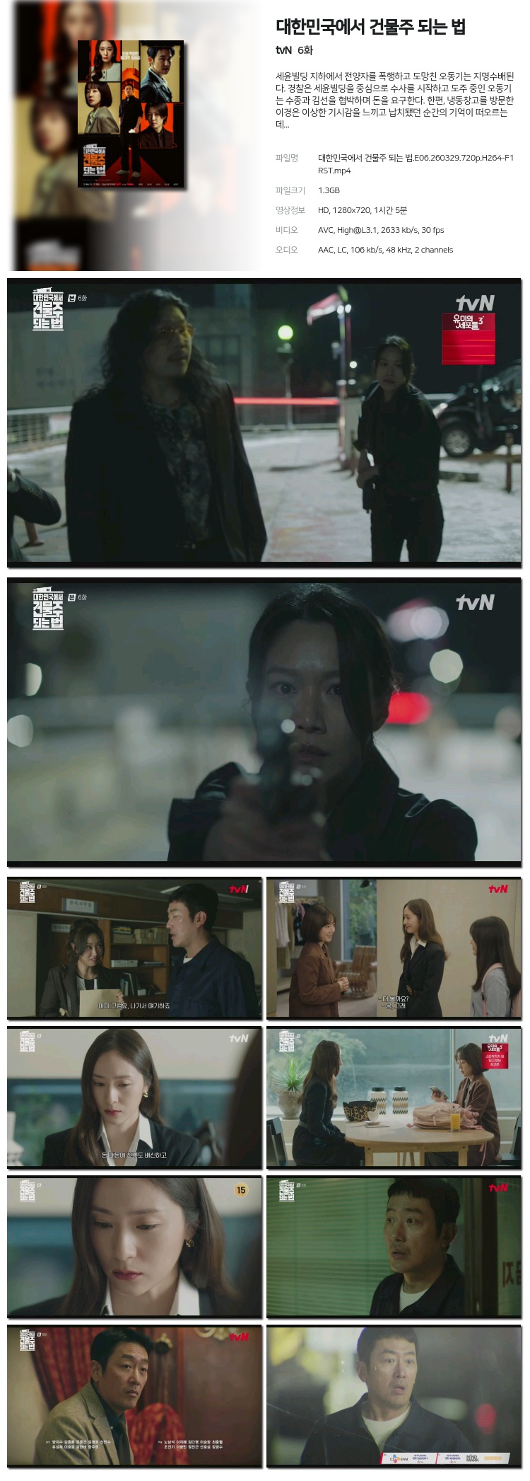 [tvN] ´ëÇѹα¹¿¡¼­ °Ç¹°ÁÖ µÇ´Â ¹ý.E06.260329.720p.H264-F1RST... 1.3G Ãֽŵå¶ó¸¶