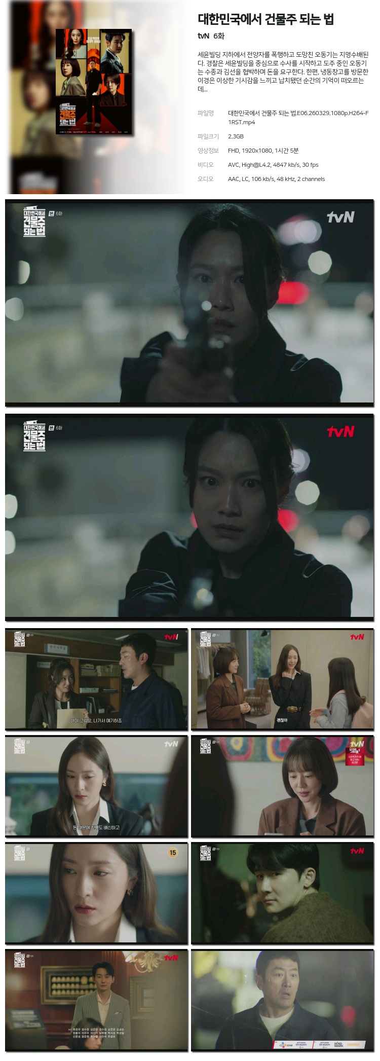[tvN] ´ëÇѹα¹¿¡¼­ °Ç¹°ÁÖ µÇ´Â ¹ý.E06.260329.1080p.H264-F1RST... 2.3G Ãֽŵå¶ó¸¶