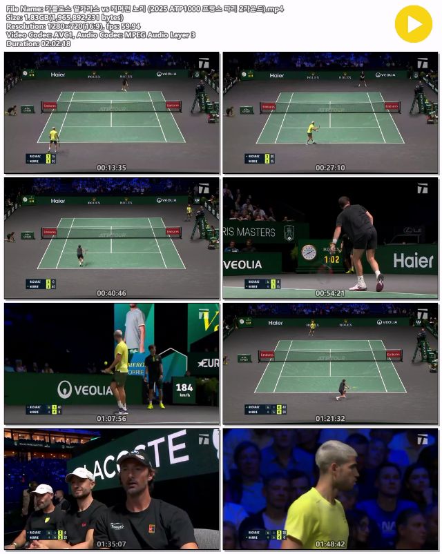 [Å״Ͻº] ¾ËÄ«¶ó½ºvs³ë¸® 2025 ATP1000 ÇÁ¶û½º ÆÄ¸® 2R... 1.8G µ¿¿µ»ó