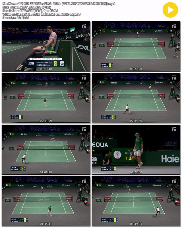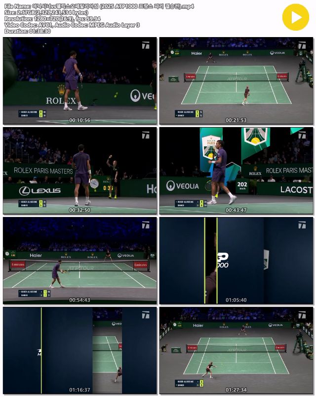 [Å״Ͻº] ¾ËÄ«¶ó½ºvs³ë¸® 2025 ATP1000 ÇÁ¶û½º ÆÄ¸® 2R... 1.8G ½ºÆ÷Ã÷