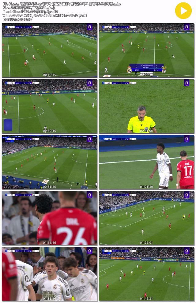 [Ã౸] ·¹¾Ë¸¶µå¸®µåvsº¥ÇÇÄ« 2026 UCL Ç÷¹ÀÌ¿ÀÇÁ 2Â÷... 2.1G ½ºÆ÷Ã÷