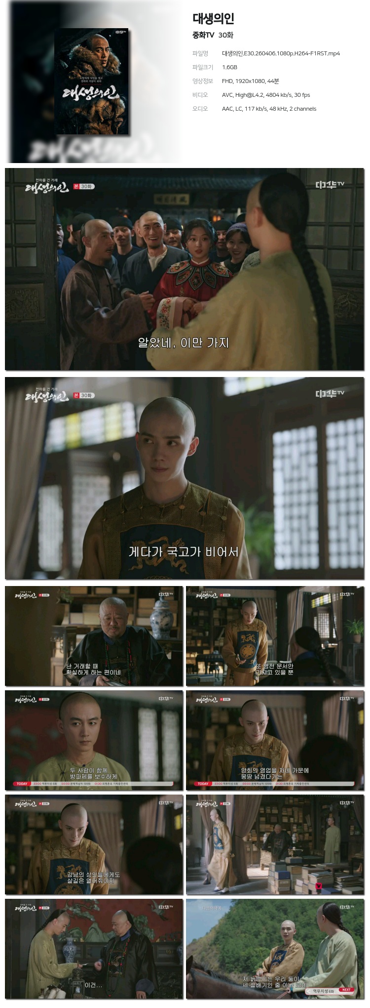 [ÁßÈ­TV] ´ë»ýÀÇÀÎ.E30.260406.1080p.H264-F1RST... 1.6G Áßµå