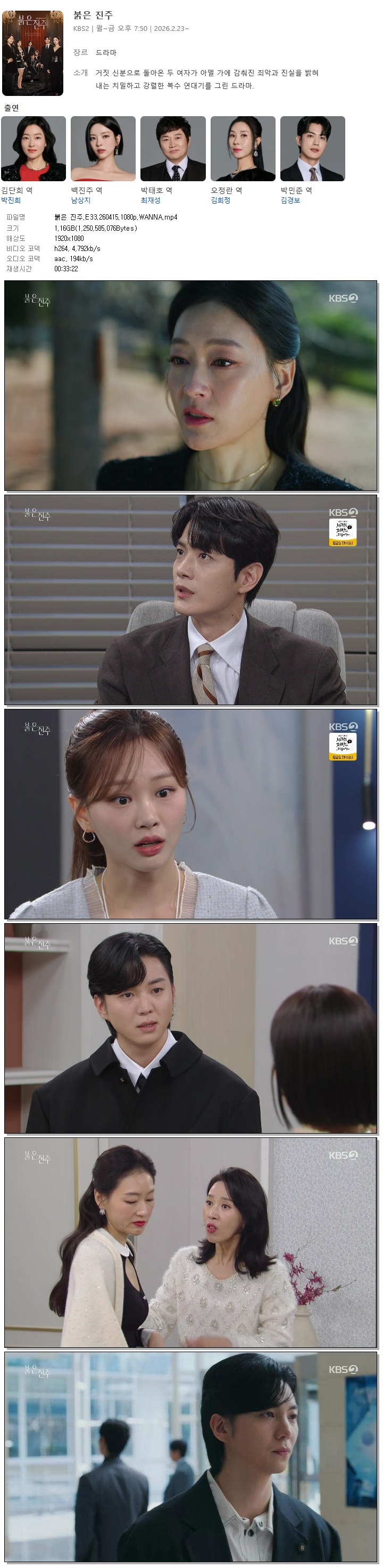 [KBS2] ºÓÀº ÁøÁÖ.E33.260415.480p.H264-F1RST... 188.4M Ãֽŵå¶ó¸¶