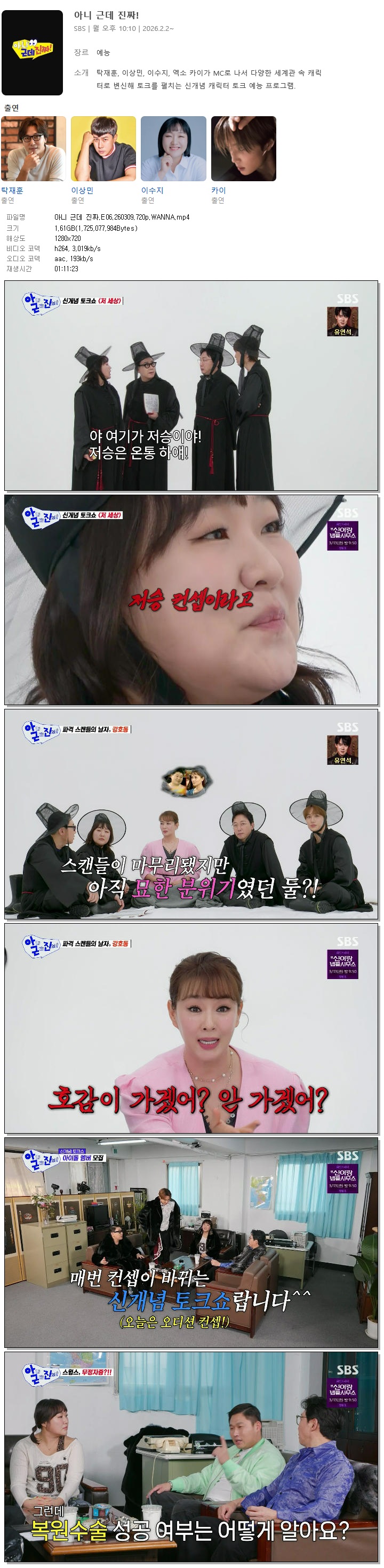 [SBS] ¾Æ´Ï ±Ùµ¥ ÁøÂ¥!.E06.260309.1080p.H264-F1RST... 1.6G ¿¹´É