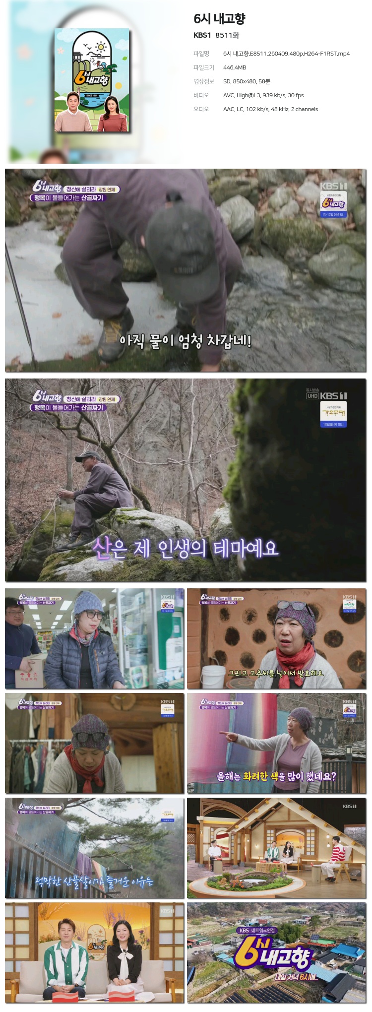 [KBS1] 6½Ã ³»°íÇâ.E8511.260409.480p.H264-F1RST... 446.4M ±³¾ç