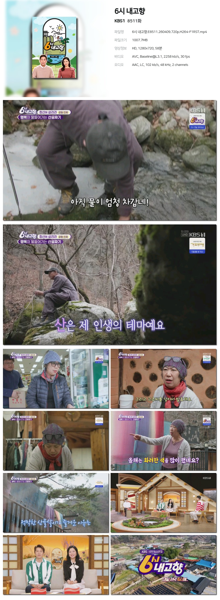 [KBS1] 6½Ã ³»°íÇâ.E8511.260409.720p.H264-F1RST... 1,007.7M ±³¾ç