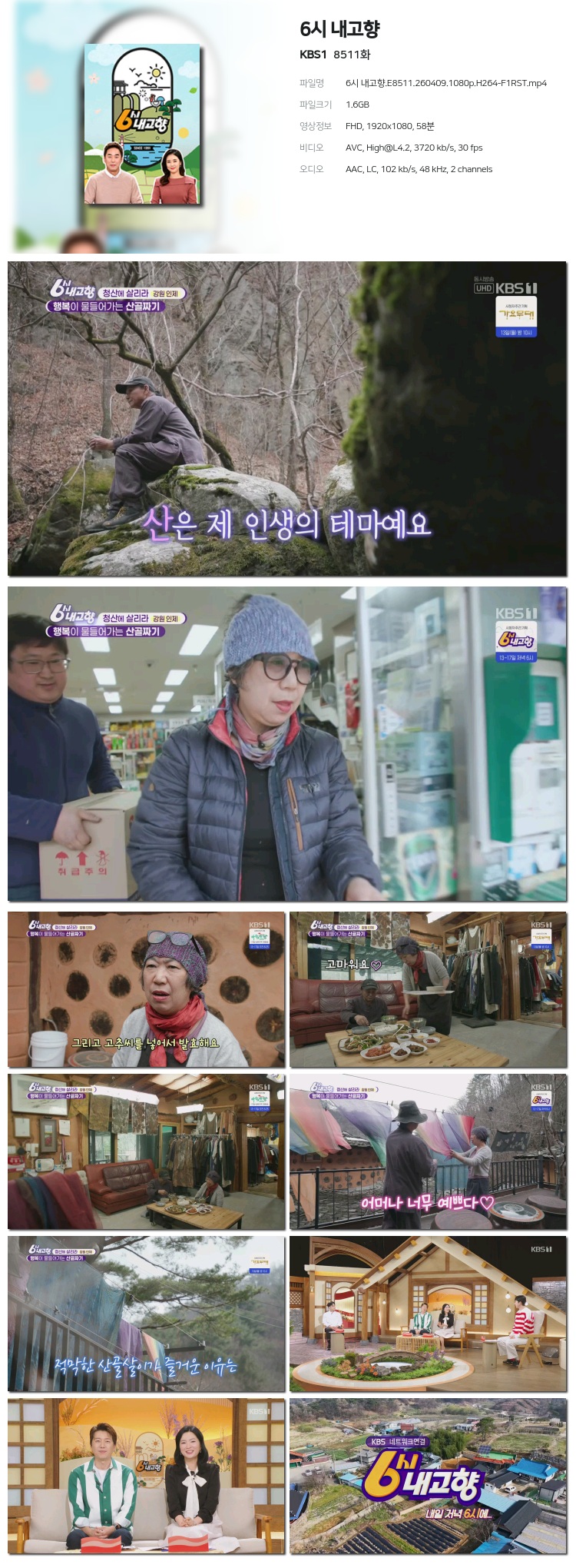 [KBS1] 6½Ã ³»°íÇâ.E8511.260409.1080p.H264-F1RST... 1.6G ±³¾ç