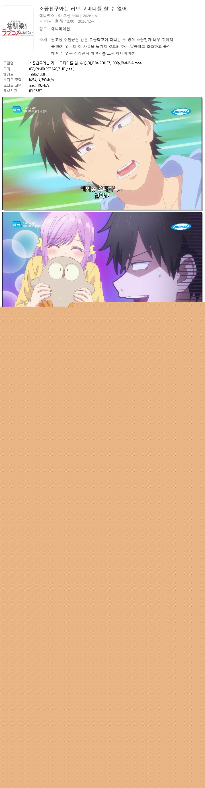 ¼Ò²ßÄ£±¸¿Í´Â ·¯ºê Äڹ̵𸦠ÇÒ ¼ö ¾ø¾î.E04.260127.1080p.WANNA... 856.1M ÃֽžִÏ